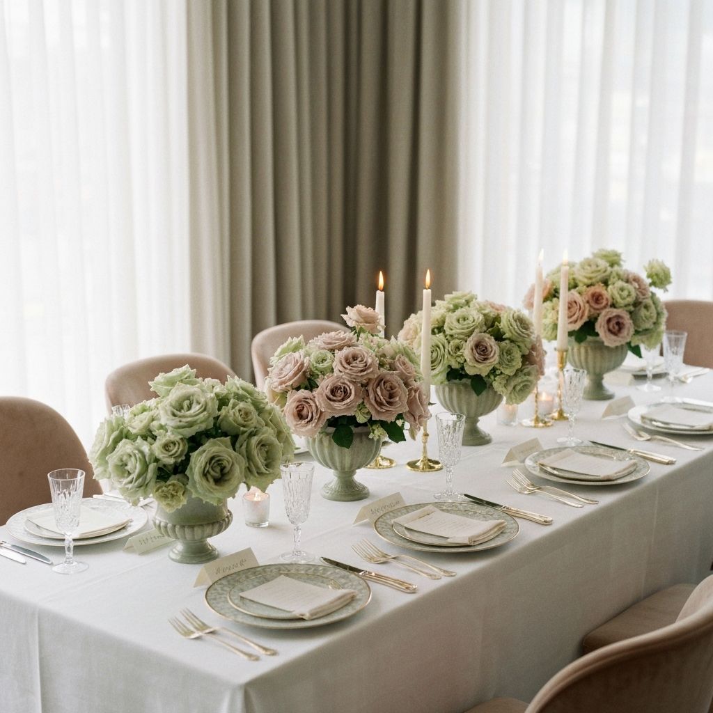 Die sanfte Kombination aus Salbeigrün und Altrosa dominiert die Hochzeitssaison.